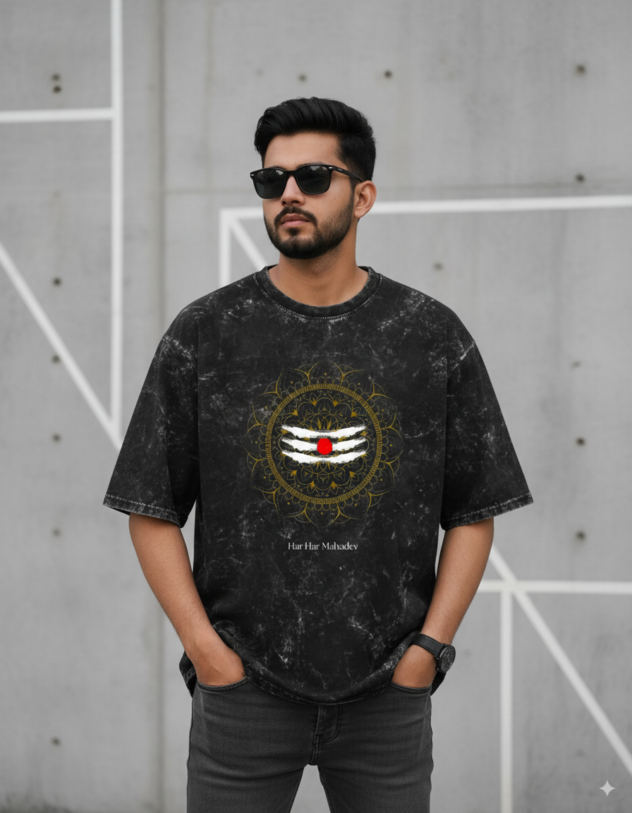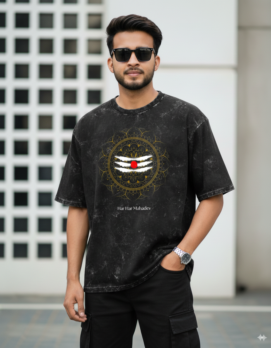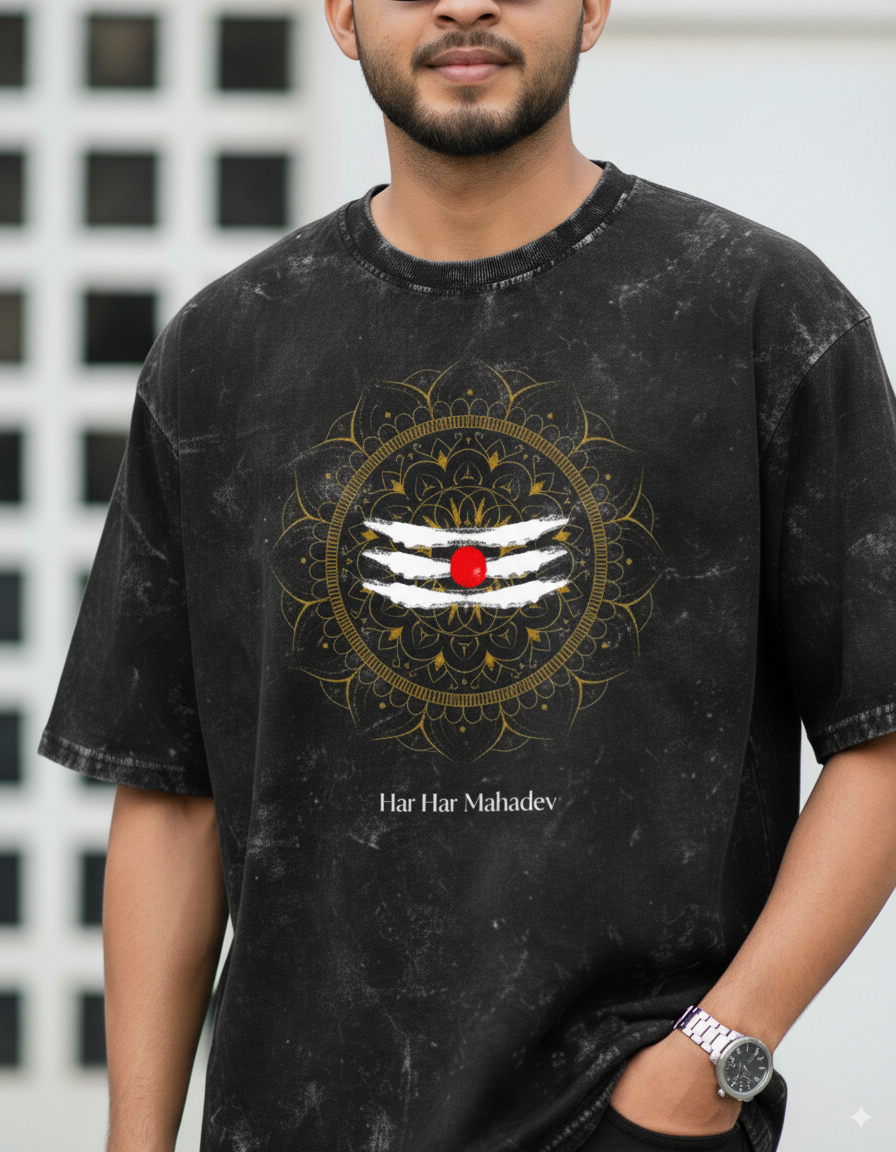 Celebrate strength and serenity with our Har Har Mahadev Vintage Black Tee. Crafted for everyday wear, this premium tee pairs bold spiritual symbolism with street-ready style: a distressed black wash, intricate gold mandala, and the iconic Shiva tilak in white with a red bindi — finished with the subtle “Har Har Mahadev” script.